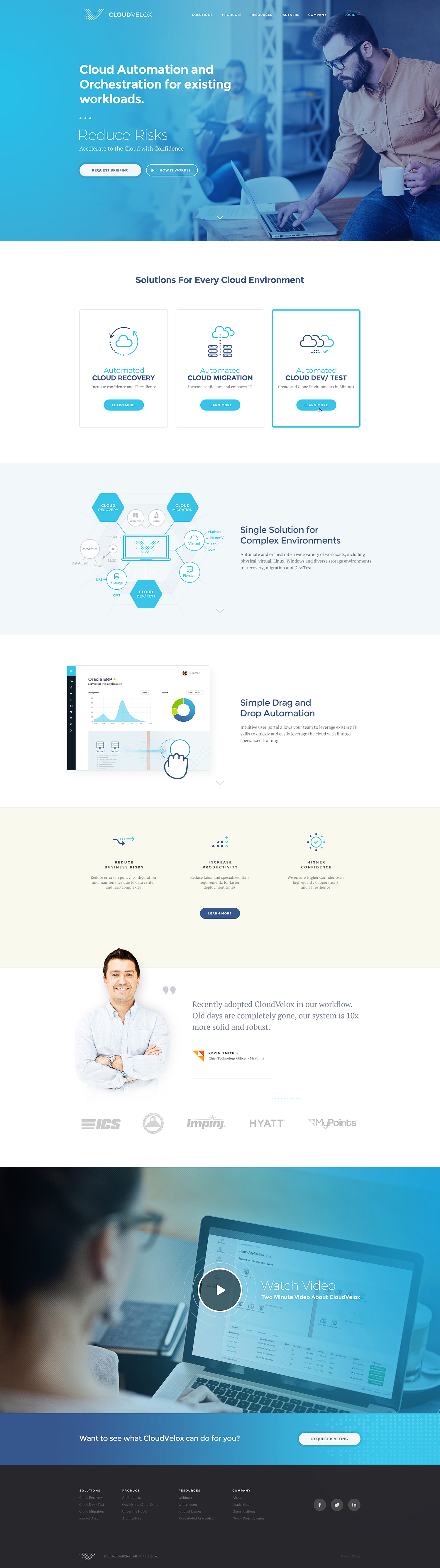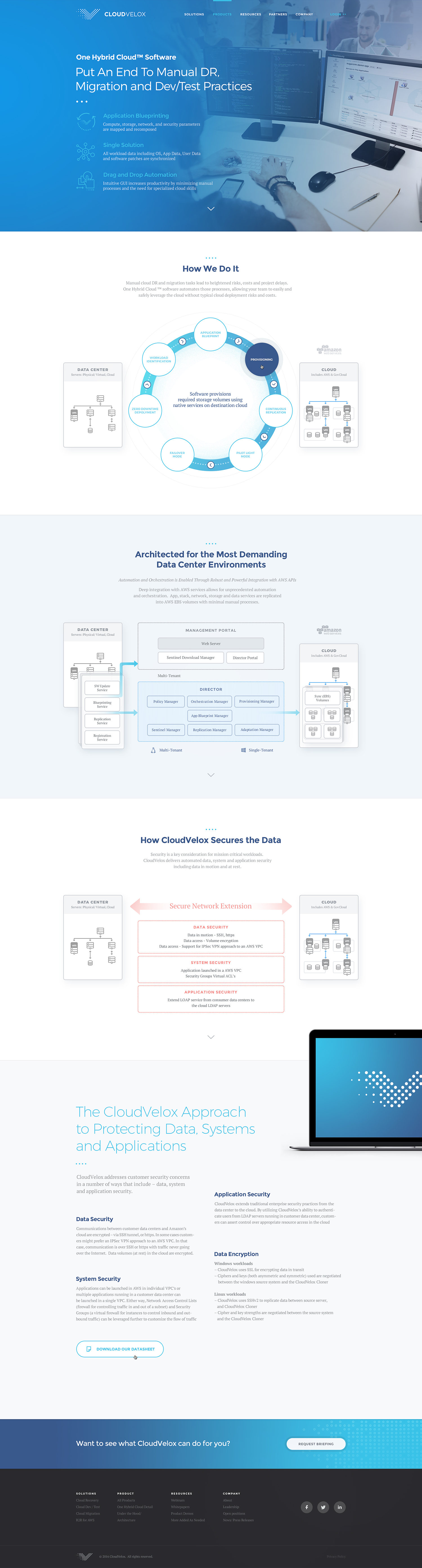 I was hired to lead the entire rebranding of the Identity, the Marketing site from a complete User Experience. The marketing pages serve to explain what CloudVelox is, what the Automation products are, and how it's differentiated from competitors. The brand strikes a delicate balance between startup and Large corporations and aims to be approachable for all levels of Cloud Automation sophistication.